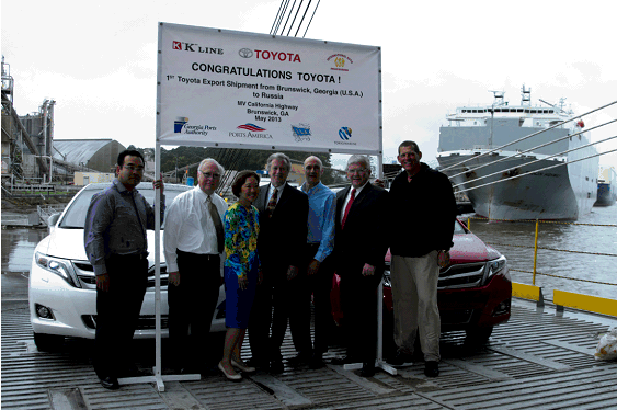 The K Line’s vessel California Highway set sail for Russia and Ukraine, carrying the first Toyota Venzas exported through the Port of Brunswick, Ga. “The export of American-built Venzas to Russia and Ukraine further solidifies Toyota’s commitment to establishing its U.S. manufacturing operations as a key supplier of vehicles for global markets,” said Corinne Akahoshi, National Manager of Marine Logistics Operations at Toyota Motor Sales, U.S.A., Inc. “We are proud to partner with the Georgia Ports Authority and all other parties involved, and are grateful for their support of this initiative.” The new Toyota Venzas are produced at the company’s Georgetown, Ky., plant, which employs about 6,600 people and represents a $6 billion investment. The Georgetown plant is the company’s largest manufacturing facility outside of Japan. The Port of Brunswick’s Colonel’s Island Terminal is the nation’s third busiest autoport, handling 612,489 auto and machinery units in calendar year 2012. “Toyota, a new client for the Georgia Ports Authority, joins 20 other domestic and foreign carmakers who use the Port of Brunswick,” said GPA Executive Director Curtis Foltz. “Increasingly, Brunswick is a critical gateway for American-made vehicles entering the global marketplace.” Through March of the current fiscal year, Brunswick has handled 458,061 units of auto and machinery cargo, an increase of 18 percent over the 388,061 handled over the same period in the previous fiscal year. “Because of our direct interstate access and two Class I rail services, we can move exports from inland factories more efficiently, as well as move import cargo to destinations across the Southeast,” Foltz said. International Auto Processing was instrumental in winning the Toyota business, and will thus serve as Toyota’s auto processor. “Toyota’s decision to go with the Port of Brunswick is a testament to the level of service that auto manufacturers can expect here in Georgia,” said IAP President and CEO Robert Miller. IAP is the original auto processing company on Colonel’s Island, and its operations today encompass more than 200,000 square feet of processing facilities and 255 acres of storage and processing area on Colonel’s Island, with more than 200 employees. The port features four other auto processors in addition to IAP. The Port of Brunswick handles approximately 10 percent of all U.S. roll-on/roll-off trade, and 12 percent of U.S. Ro/Ro imports. The port ranks third in the nation for auto and machinery trade, serving nearly two dozen domestic and foreign carmakers, as well as heavy equipment producers.