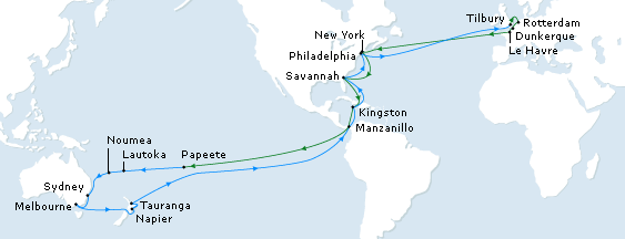 CMA CGM upgrades its Round the World PANAMA DIRECT service CMA CGM is pleased to announce the upgrade of its Round the World PANAMA DIRECT service from a fortnightly to a weekly frequency, as from September 18th, 2013. The new PANAMA DIRECT WEEKLY service will offer an extensive coverage of the trade with 20 ports of call. Thanks to its integration in CMA CGM global network, this upgraded service will serve 15 different markets such as Australia, New Zealand, South Pacific Islands, Central and South America, the Caribbean, North America (USEC), North Europe, the Baltic, Mediterranean, North Africa, Black Sea, etc.It will also, offer the fastest transit from Australia and New Zealand to Europe, a serious advantage for reefer shippers and UK Tilbury Wednesday call will allow fast delivery to final destinations for time sensitive cargo such as fresh products.As from September 18th 2013, with CMA CGM MANET in Tilbury, the PANAMA DIRECT Service will be operated along the following schedule:Tilbury (Wed) – Rotterdam (Thu) – Dunkirk (Sat) – Le Havre (Sun) – New York (Tue) – Savannah (Fri) – Kingston (Mon) – Cartagena (Wed) – Papeete (Tue) – Lautoka (Mon) – Noumea (Thu) – Sydney (Mon) – Melbourne (Wed) – Tauranga (Tue) – Napier (Thu) – Lyttelton (Fri) - Panama Canal – Manzanillo, PA (Sun) – Kingston (Tue) – Savannah (Fri) – Philadelphia (Mon) – Tilbury. Xavier Eiglier, Vice President CMA CGM Antilles Guyane, Oceania and Indian Ocean lines declares: “The upgrade of the PANAMA DIRECT service confirms CMA CGM’s intention to meet its customer’s expectation through the provision of an even more reliable service with an extensive coverage and fastest transit times.”