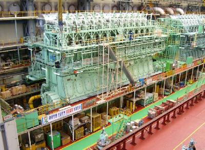 MAN Diesel & Turbo has announced that its first super-long-stroke, 90-cm bore Mk 9 engine has successfully completed test bed trials at Hyundai Heavy Industries Engine & Machinery Division. The S90ME-C9.2 covers the new trend in container shipping demanding smaller bore, super-long-stroke engines with lower propeller speeds. Physically the largest two-stroke engine ever designed by MAN Diesel & Turbo, the engine will deliver a massive torque of 8.5 million Nm at 84 rpm and has a total output of 69,720 kW. The engine has been built by one of world’s major two-stroke engine builders, Hyundai Heavy Industries, and it will be installed on a container vessel built at Samsung Heavy Industries for Orient Overseas Container Line (OOCL), a Hong Kong-based container shipping company well recognised for focusing on sustainable and environmental friendly technology advancements. Since the beginning of the global economical crisis in late 2008, MAN Diesel & Turbo has experienced that shipowners are investigating possibilities for reducing operating costs, through measures like low-load optimisation of engines, slow steaming and operation with turbocharger cut-out. These tendencies led MAN Diesel & Turbo to offer possibilities supporting optimised propulsion efficiency by way of lower propeller speeds by using longer-stroke engine designs. This, in combination with the need to meet the newly introduced Energy Efficiency Design Index, EEDI, made MAN Diesel & Turbo develop the MAN B&W super-long-stroke S90ME-C9.2. Developed specifically for container ships, the S90ME-C9.2 is based on the VLCC-optimised S90ME-C8, which in the meantime also found applications in a number of container ships. Furthermore, the G series of engines with even larger stroke to bore ratios, has been made available, with G40, G45, G50, G60, G70, and G80 type engines supporting the tendency of using lower propeller speeds with a super-long stroke for all ocean-going ship types. In addition to the basic optimisation of the propulsion plant for container ship operation, by using the low propeller speed supported by the S90ME-C9.2 engine, the engine is delivered with the following three different MCR optimisations: