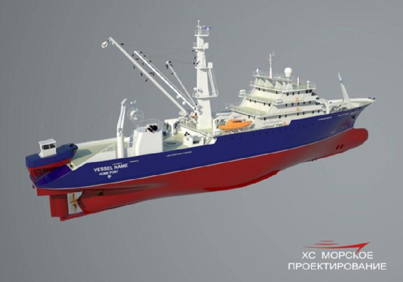 Hotchya Marine Design Company signed a contract with the Ministry of Industry and Trade for the development of the initial design requirements and the conceptual design of a modern large tuna seiner. As per the design requirement, the seiner length will be approximately 90.00 meters, middle body width will be 15.00 meters, and the hull height will be approximately 10.00 meters. The output of the main propulsion system is 6,000 kW, and the approximate shaft generator capacity will be 1,200 kW. The vessel can accelerate to 16 knots. The vessel endurance is 55 days. The vessel’s deadweight is approximately 1,750 tons. GLONASS and GPS navigation equipment will be installed. Fish will be stored in 20-22 freezing holds. The seiner will operate in the unlimited area. There are 35 crew and science team members. The project will follow the “Conceptual Marine Equipment Designs” (“New Look”) line within the framework of the “Civil marine facilities development for 2009-2016″ federal special-purpose program.