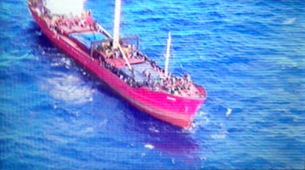 The "Baris" with 700 immigrants from various countries went adrift 30 nautical miles southeast of Crete after a mechanical Problem on Nov 25, 2014.