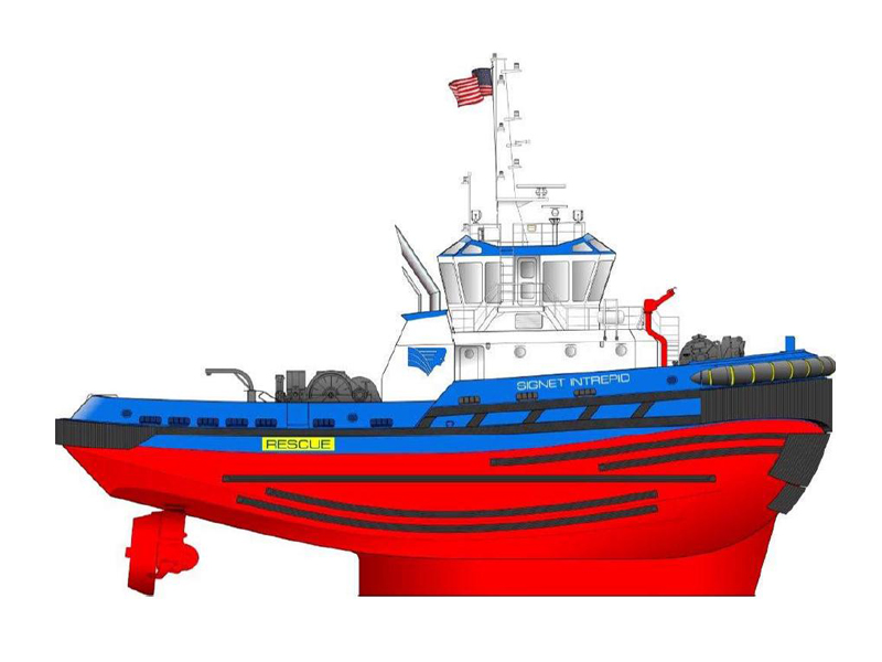 Signet Maritime Corporation continues to expand its diverse fleet by awarding a contract for the construction of two Robert Allan Ltd. designed tugs to Patti Marine Enterprises, Inc. in Pensacola, Florida.This marks the ninth Signet/Robert Allan Ltd. design in 5 years. Construction commenced in November 2012 with an expected delivery of December 2013 for the first vessel and March 2014 for the second vessel. Continuing the longstanding Signet tradition of naming vessels in honor of America’s Cup winners, the new RAmparts 3200 ASD tugs will be named M/V SIGNET INTREPID and M/V SIGNET VIGILANT.These vessels are the fifth and sixth ASD tugboats delivered for Signet in less than three years and will operate from the International Operations Center in Ingleside, Texas, where they will primarily be used to perform offshore and inshore rig escort, barge, and subsea support work.Once again, Signet reaffirms its commitment to building environmentally conscious tugboats that will adhere to the Environmental Protection Agency’s Tier III emissions regulations. The tugs will also feature C175-16 CAT engines, Markey Model DEPCF-52S winch, and Rolls Royce US 255 controllable pitch Z-drives. With 83 tons of Bollard Pull, these vessels will be powerful and offer improved reliability to handle the expanding needs of the marine transportation industry.