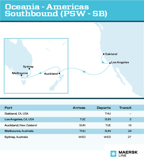 MAERSK Line is terminate its Oceania PSW service which plies Los Angeles, Oakland, Australia, New Zealand and Fiji Islands to be replaced by existing Pacific network.