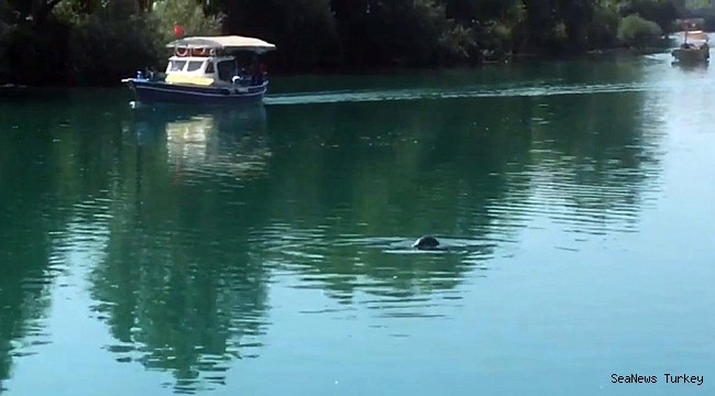 The Mediterranean monk seal seen in Manavgat River in Antalya province of Manavgat has lived minutes of fun.