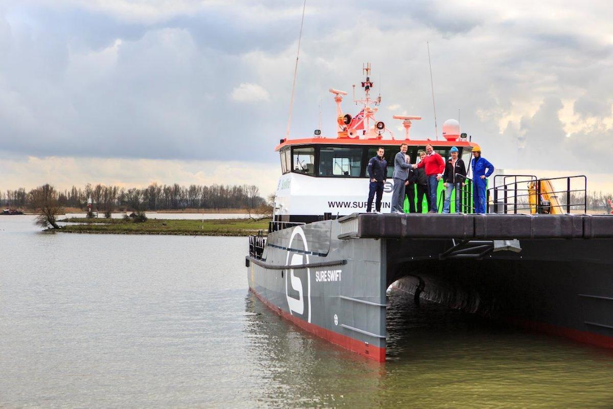 British company Sure Wind Marine Ltd. has taken delivery of its second Damen Twin Axe Fast Crew Supplier– the Sure Swift