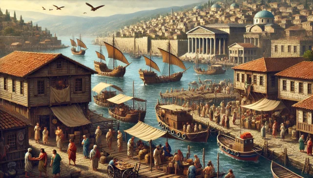 The Greek historian Theopompos (4th century BC) describes Byzantion as a bustling trade hub where people spent much of their time near the waterfront, indulging in a hedonistic lifestyle made possible by the wealth brought in by maritime traffic. The city’s identity was shaped by commerce and leisure, intertwined with the rhythms of the Bosphorus current.